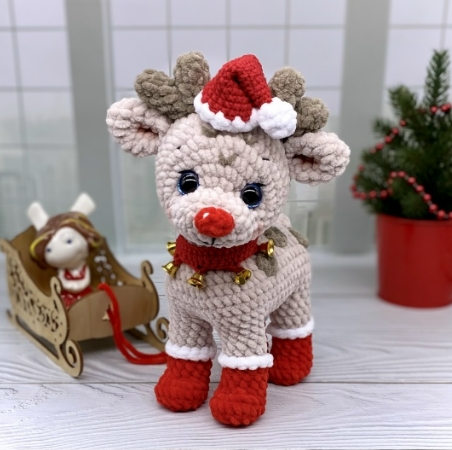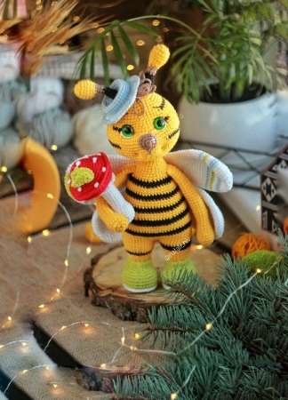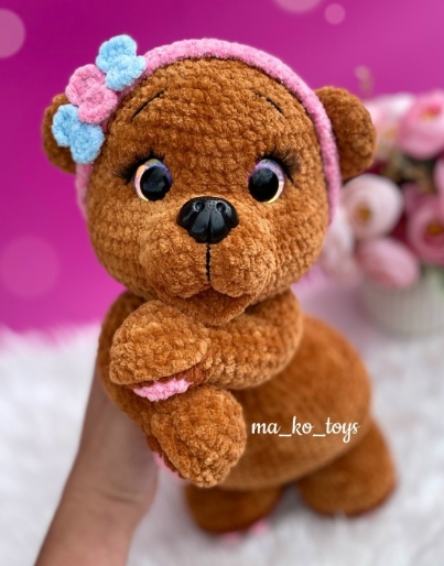 Размер игрушки примерно 24 см (из рекомендованных материалов), но ваш размер может отличаться от моего из-за разной плотности вязания.