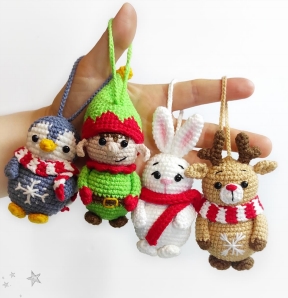 МК содержит подробное пошаговое описание 4-х ёлочных игрушек