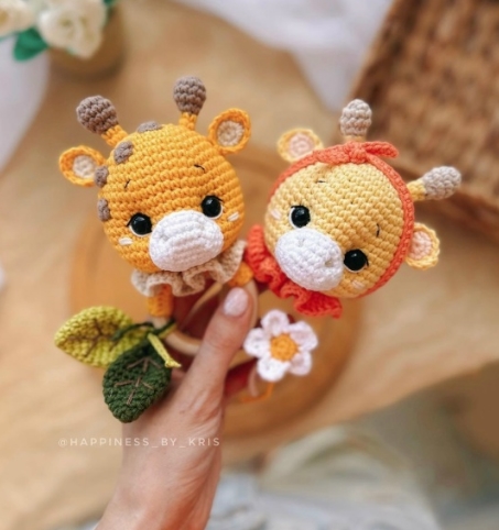 Размер погремушки при использовании указанных материалов - 14 см (вместе с рожками)